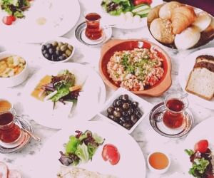 - چای یا آب جوش / خرما / حلیم / نان /پنیر / گردو /هر نوع آش / هر نوع سوب /حلوا /شیر /شله زرد /نان وپ نیر وسبزی / خیار وگوجه به همراه نان وپنیر .